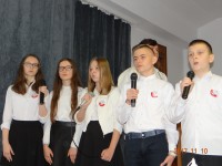 Akademia upamiętniająca 99 rocznicę odzyskania przez Polskę niepodległości zgromadziła całą społeczność szkolną. Przedstawienie było nietypowe – podstawę stanowiła rozmowa, którą prowadziła młodzież w czasie tworzenia wystawy na temat Święta Niepodległości. W spektaklu wykorzystano także teksty literackie i prezentacje multimedialne. Nie zabrakło również pieśni patriotycznych – uczniowie dumnie odśpiewali Rotę. Występ swoim pięknym głosem uświetniła uczennica kl. II c Magdalena Morawska, która zaprezentowała współczesne utwory patriotyczne. W przedstawieniu wystąpili uczniowie klas 6c, 7c, II c i III c gimnazjum. Program przygotowali nauczyciele: Małgorzata Brzozowska, Małgorzata Trybel, Krzysztof Partyka, a o wystrój szkoły zadbali nauczyciele świetlicy i edukacji wczesnoszkolnej.