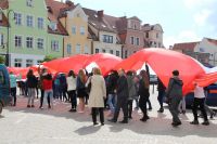 Uczniowie Szkoły Podstawowej nr 1 już dzisiaj przypomnieli o tym święcie mieszkańcom Nidzicy. Gimnazjaliści uroczyście przemaszerowali z flagą pod nidzicki ratusz, a następnie wspólnie odśpiewali hymn Polski. Obchody Święta Flagi zorganizowała p. Małgorzata Brzozowska.