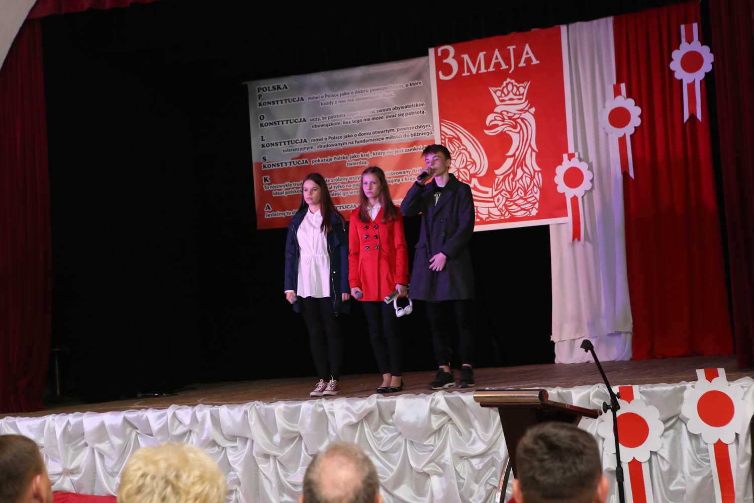 Pięknym walcem uczciły ten dzień tak ważny dla wszystkich Polaków. Następnie starsi uczniowie zaprezentowali przedstawienie, podczas którego zastanawiali się nad współczesną formą patriotyzmu. Odczytując tekst Ustawy Rządowej z 1791 roku, szukali odpowiedzi na nurtujące ich pytania: na czym polega prawdziwy patriotyzm, czego nie lubimy w nas Polakach, jak walczyć z wadami narodowymi, które czynią nas ludźmi zamkniętymi, nieżyczliwymi, oceniającymi innych za pomocą stereotypów. Dali też wskazówki, jak żyć godnie i uczciwie, aby być prawym Polakiem, dumnym ze swego pochodzenia. Z ich słów płynęła duma z przynależności do narodu polskiego.