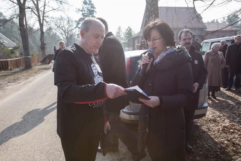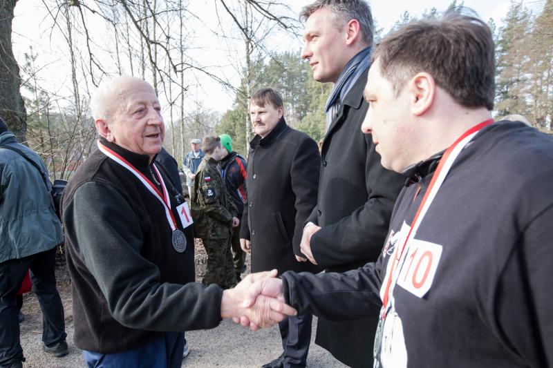 Po raz piąty w Polsce, a po raz pierwszy w naszym mieście uroczyście obchodziliśmy Narodowy Dzień Pamięci Żołnierzy Wyklętych. Uroczystości rozpoczęły się 1 marca od złożenia kwiatów i zniczy pod katownią dawnego Urzędu Bezpieczeństwa, przy ul. 1 Maja. W uroczystości przygotowanej przez Urząd Miejski w Nidzicy wzięli udział między innymi: Zastępca Burmistrza Nidzicy Leszek Śpiewak, Starosta Grzegorz Napiwodzki, Przewodniczący Rady Miejskiej Paweł Przybyłek, radny Sejmiku Województwa Warmińsko- Mazurskiego Patryk Kozłowski, kombatanci, radni, nauczyciele, uczniowie. Zastępca Burmistrza Leszek Śpiewak po krótkim przemówieniu zaprosił zgromadzonych do Zimnej Wody, gdzie odbyła się uroczysta msza święta z udziałem pocztów sztandarowych. Po mszy kilkadziesiąt osób wzięło udział w biegu „Wilczym Tropem” zorganizowanym przez Wojciecha Żulczyka. Biegli i młodzi i ci trochę starsi, kobiety i mężczyźni- całe rodziny. A wszystkich wystartował do biegu Poseł na Sejm RP- Paweł Papke. Mimo że biegło wiele osób, chyba na największe słowa uznania zasługuje pan Roman Przybysz- jeden z najaktywniejszych działaczy sportowych Gminy Nidzica, który mimo słusznego wieku przyjechał do Zimnej Wody na rowerze, przebiegł dystans blisko 2 kilometrów, odebrał zasłużony medal za udział w zawodach i wrócił rowerem do miasta. A to tylko taka mała zaprawa, ponieważ pan Roman w tym tygodniu wyjeżdża na ukochane narty. Gratulujemy!
