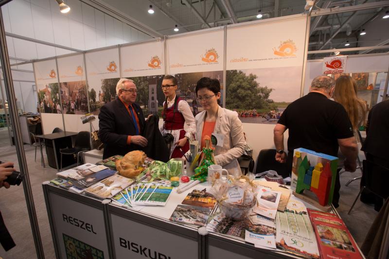 Wyjazd na targi był możliwy dzięki realizowanemu przez Urząd Marszałkowski projektowi „Cittaslow – sieć miast Warmi Mazur i Powiśla stawiających na dobra jakość życia”. Urząd Marszałkowski pod czujnym okiem Dyrektora Departamentu Polityki Jakości Stanisława Harajdy zapewnił stoisko wystawiennicze, na którym każde miasto prezentowało swoje walory oraz swoje charakterystyczne produkty. I tak Olsztynek przyjechał z jagodziankami, Gołdap z wodą zdrojową, Lubawa z ciastkami z Irmagu, Dobre Miasto ze śliwkami w czekoladzie, Lidzbark przywiózł znakomite sery, Pasym pieczywo, a Nidzica wyborne miody pitne. Warmińsko – Mazurskie stoisko było oblegane, a tych którym zdarzyło się zabłądzić między uliczkami wystawowymi „sprowadzał na Warmię i Mazury” uzbrojony po zęby rycerz, czyli Paweł Bukowski, dyrektor Nidzickiego Ośrodka Kultury. Na nidzickim stoisku informacji udzielał Zastępca Burmistrza Nidzicy Leszek Śpiewak. Ulotki, broszurki, mapy i wizytówki nidzickich firm, organizacji i stowarzyszeń schodziły jak ciepłe bułeczki. Jednak największą furorę robiła nidzicka gra interaktywna, dzięki której każdy zwiedzający mógł przenieść się do średniowiecznej Nidzicy i sprawdzić, czy zamek dalej stoi tam, gdzie stał.