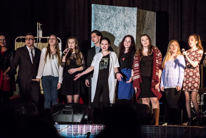 Gra aktorska uzupełniona została przejmującymi piosenkami śpiewanymi przez uczniów ZSZiO z podkładem muzycznym w wykonaniu Krzysztofa Żukowskiego.